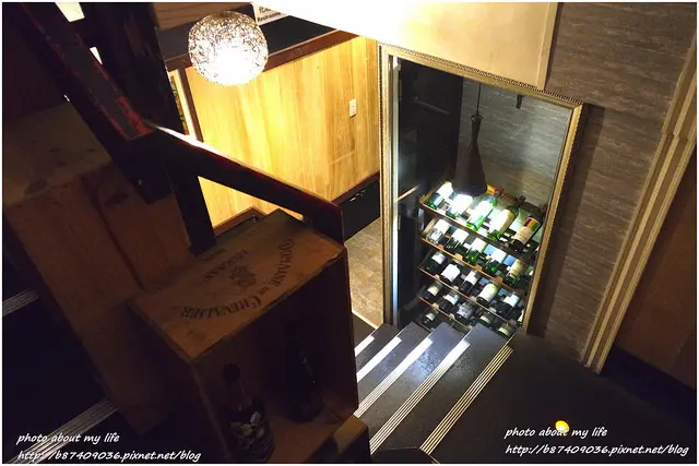 從進門到踏上階梯都能看到整齊排列的紅白酒 粉絲團還介紹餐廳設有恆溫恆濕的『火磚私藏酒窖』