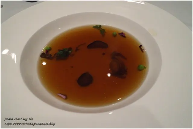 說是雞湯但蕈菇味更濃郁 菇味彷若台灣慣用的香菇乾再精粹N倍 連我這菇菇控也不太習慣