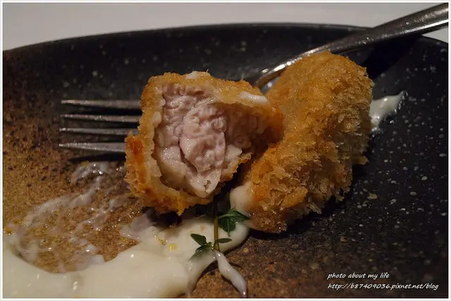 原以為熱騰騰的酥脆炸衣裡頭包著多汁的雞肉 但卻是極為少見的Sweetbread(小牛胸腺)