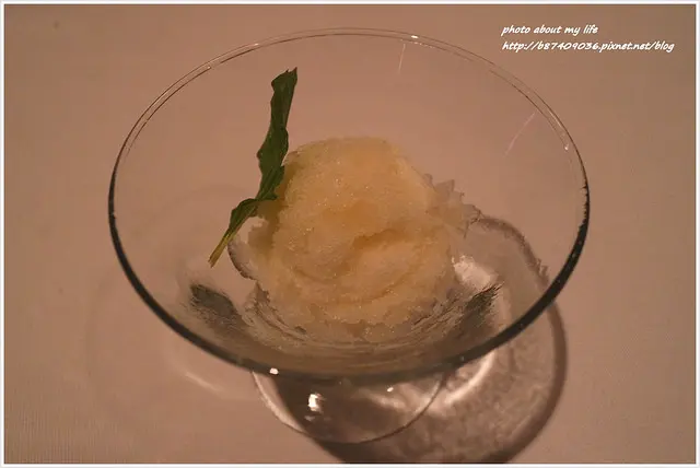 酸到皺眉的檸檬冰沙好過癮~~~加上檸檬皮的輕澀香氣果真讓前幾道料理在嘴裡的餘味清爽許多