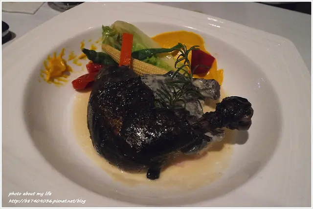 烏骨雞、松露、鴨肝醬汁(1550元) 沒想到黑嘛嘛的烏骨雞也會是法式料理的食材