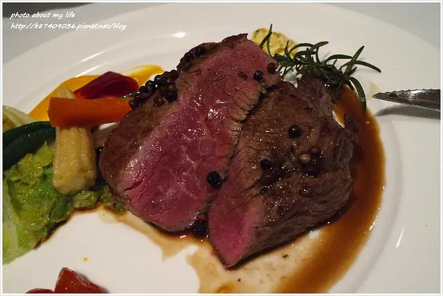 可能嘴拙所以嚐不出醬汁的果香氣XD 不過搭胡椒顆粒的滋味很特別 隱約的微辛辣感襯出牛肉甜味