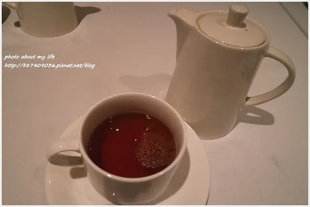 餐後的大吉嶺紅茶看似濃郁但溫和順口 即使沒放糖和奶精也不覺得苦澀