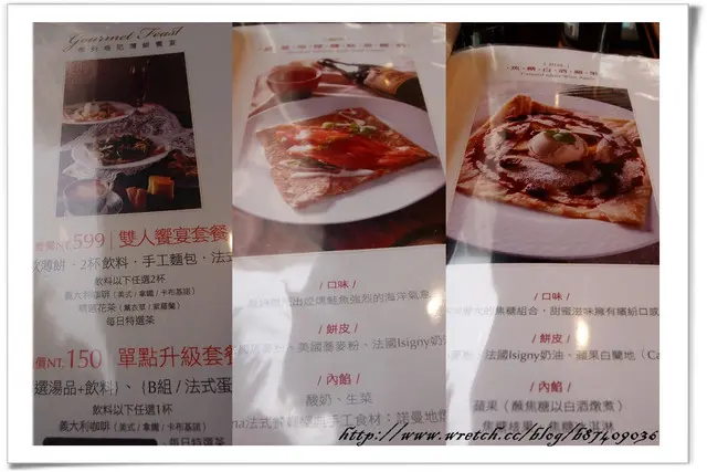 一打開menu馬上被"雙人饗宴套餐"(599元)的照片吸引