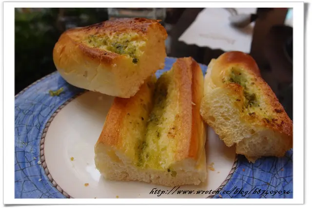 手工麵包上桌時還是熱騰騰的呢~咬起來鬆軟 蒜香味又濃郁!
