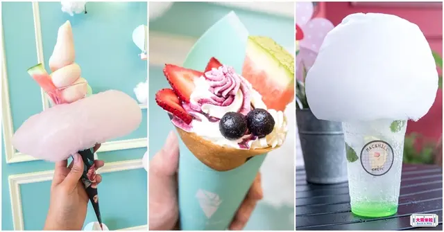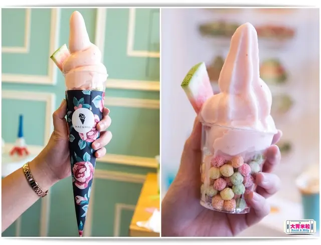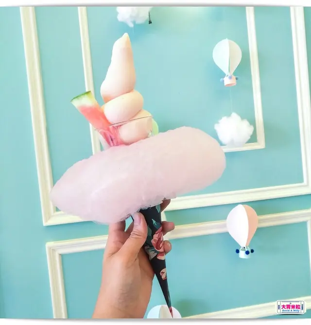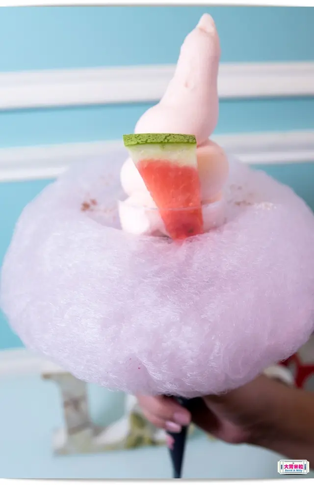 最上頭是西瓜牛奶霜淇淋,外層搭配一圈棉花糖雲朵,實在太可愛了吧!!!
