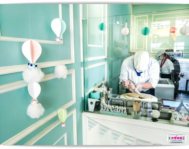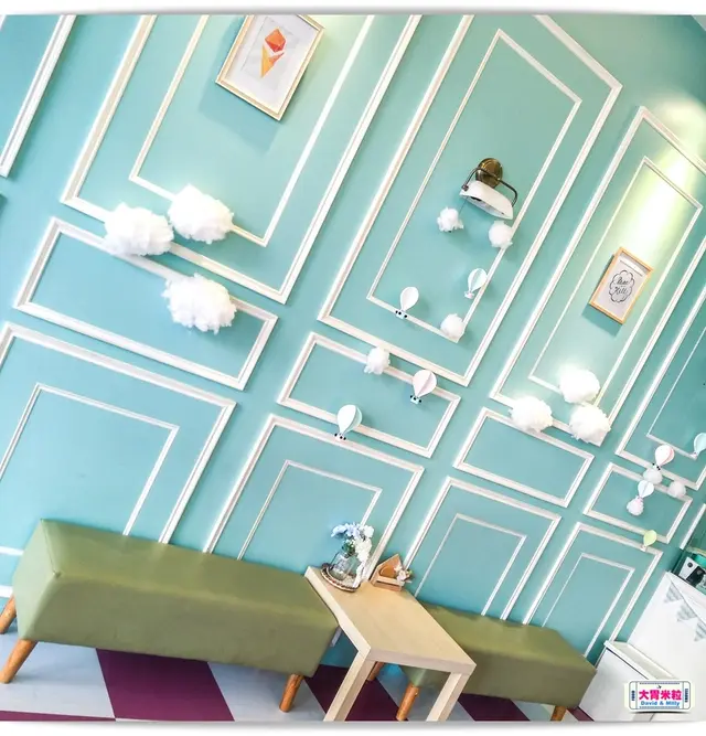 每次來這最吸引就是店內招牌Tiffany牆,這回發現多了許多小雲朵佈置,看起來更加浪漫夢幻!