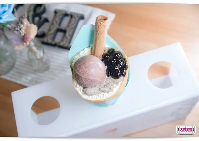 拍照後趕緊品嚐我的珍珠奶茶可麗餅,一入口軟綿的餅皮搭配冰淇淋好消暑,