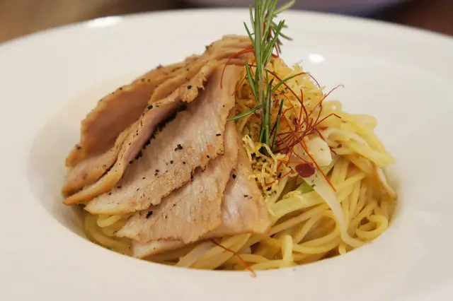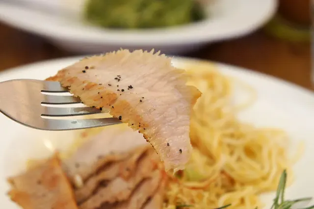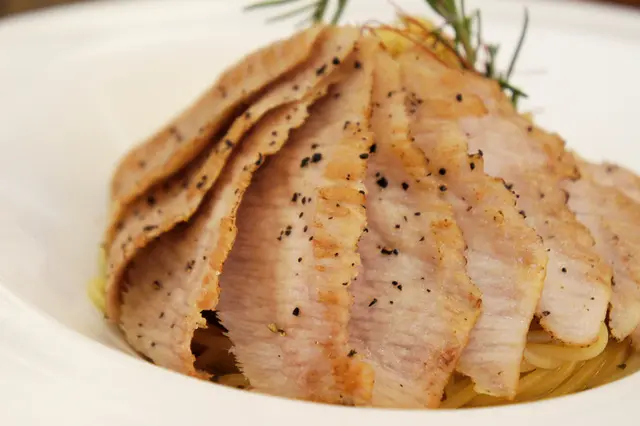 現煎的松阪豬肉Q彈有嚼勁,加上一點鹽跟胡椒做調味很順口