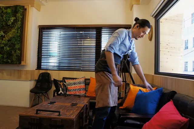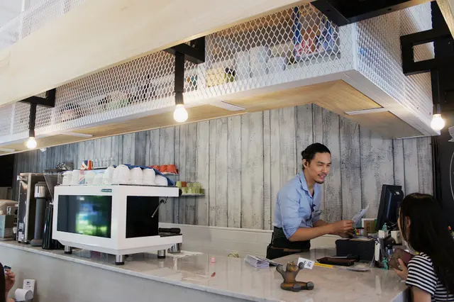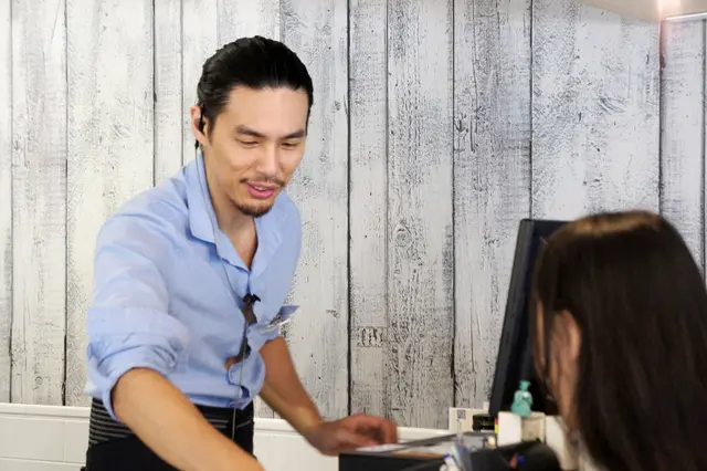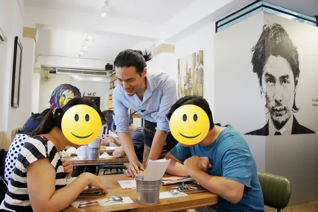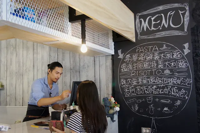 帥氣的店長正在幫鄰桌的客人介紹餐點