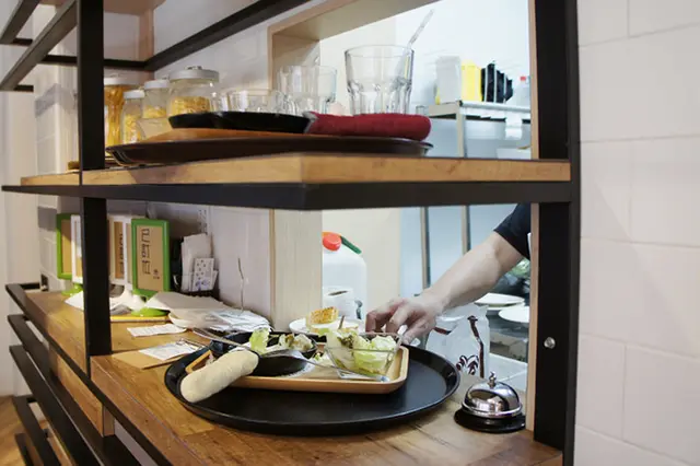 廚房也在二樓,出餐時會按鈴,聽到叮叮聲服務人員就會來取餐了