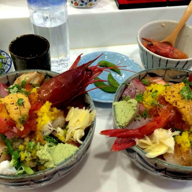十二手攥握壽司NT580(鮪魚、鮭魚、旗魚、海鱺、竹筴、穴子、比目魚緣側、北海道干貝、蟹膏、鮪魚泥、鮭魚卵、海膽),握壽司會依當天現有魚貨會做小變動。七眼比目鰭邊丼(比目魚緣側+玉子燒)NT360。緣側丼上鋪了N片比目魚緣側(至少有五大片)及大方地撒上鮭魚卵,阿揪常吃到的生魚丼飯到最後生魚片吃完了醋飯還剩下一堆...但二男的丼飯絕對都是一口生魚片一口飯。他們家的比目魚緣側帶著脆度與油度是等級較高緣側,跟阿揪吃過的很多間日本料理厚度都不同!也因為緣側肉厚比較難有入口即化的感覺,但阿揪還是喜歡"不用咀嚼"的比目魚緣側(望)。每一份丼飯份量肯定是可以吃飽的(嗝)。阿揪忘記特寫山葵,二男使用的山葵是在日本磨完後進口,師傅告訴我說順時鐘磨的山葵溫和不嗆辣而逆時鐘磨的山葵在味道上會辛辣許多。由胭脂蝦、軟絲、旗魚、鮭魚卵、穴子、魚卵等新鮮魚貨組合成堆得跟小山一樣,每次的荒海散壽司都不會一樣所以更值得期待。攪拌後與底下的洋蔥混合,和風醬不會偏酸或偏甜但就是太過於搶味完全把生牛肉的鮮甜壓了過去(建議可以稍做調整)。牛肉光是看油花就知道好不好吃!你說這會不好吃嗎XD二男海鮮丼NT520。其實最大特色就是上面的那尾巨大胭脂蝦。男子漢海鮮丼NT360。原來男子漢這麼澎湃果然名符其實啊!北海道干貝(北海道干貝、鮪魚泥、鮭魚卵、蟹膏、玉子燒)NT350。上面的海苔絲真的很難讓大家看到干貝的身影。 跟豪快海膽丼一樣先鋪上一層鮪魚泥,不同的是大方放上微炙干貝、蟹膏、鮭魚卵。表面微微炙燒的干貝鮮甜完全被鎖在裡面,好吃的不言而喻。光是鮪魚泥就足夠讓我嗑完這碗醋飯...說道醋飯,平常根本不會對飯有甚麼挑剔,但直到右上一語點醒夢中人阿揪才驚覺這醋飯也太好吃了!四條長~~~長的星鰻非常大氣鋪在飯上根本不知要從何下手!…Read More