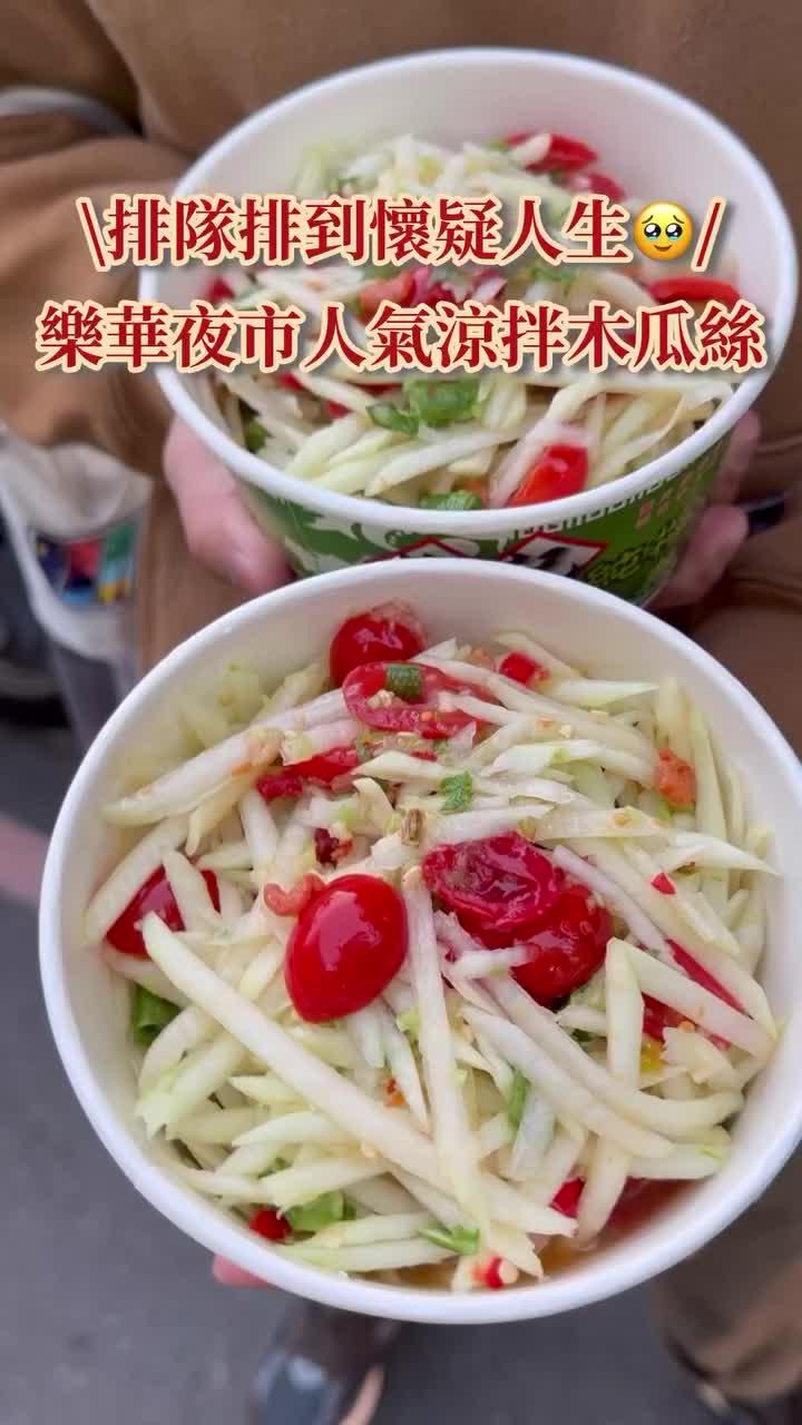 晚上吃完下港排骨酥湯後,跟朋友到樂華夜市來晃晃,消化一下肚裡滿滿的食物,無意間發現,在巷弄內居然有一群人,正在排隊買泰式涼拌木瓜只是單賣一種泰式涼拌木瓜,居然還可以開起店面,真是讓我太訝異了,據當地的朋友說,每次經過都看到滿滿的排隊人潮,只是他本人不愛吃青木瓜,所以沒吃過這攤,不知道味道如何?看到這麼一堆人為了泰式涼拌木瓜而耐心排隊等候,勾引出我對美食的好奇心,趁人潮還不多時,趕快也來排隊買來吃看看等候時間,先來拍個招牌和地址,做個紀錄一下~這裡的泰式涼拌木瓜統一價70元點餐時,只要告訴老闆你要的幾份和要多辣即可店家所使用配料有:小番茄、長豆(看起來是長豆,但不確定)、二砂糖、乾蝦米、檸檬汁、魚露、蒜頭、辣椒、青木瓜 (應該都有被點名到吧?沒被點到的食材請舉手)點餐完後,我拿著一千元要給老闆找零,老闆卻叫我自己把錢丟進去,自己找我問:難道就不怕我多拿一張嗎?老闆說:不怕,隨便你拿 (看來老闆都很相信,來這邊的客人都是很有良心的)ps.看來買泰式涼拌青木瓜,還得經過一道良心的考驗啊!!別看這份泰式涼拌木瓜是用盒子裝起來緊閉好好的,檸檬開始帶它回家時,車上居然充斥著魚露的味道,我只能說這味道的穿透性真強啊!!另外,每一份泰式涼拌木瓜,都還會另外附贈花生哦!吃第一口時,居然有在吃芒果青的錯覺,不只是我這麼覺得而已,連我阿姨吃了也是這麼說青木瓜刨成粗絲狀,吃起來酸酸甜甜辣辣脆脆又爽口,我只能說這間泰式涼拌涼拌木瓜真的是調味的太讚了,會讓人忍不住一口接著一口吃完它對了,檸檬點的這份是小辣,辣度上檸檬覺得滿剛好的,吃的時候,在口中的辣味還滿明顯的,但辣度卻不會在嘴裡停留很久,可算是還滿順口的辣,非常適合平常感吃辣,但確是吃小辣階級的朋友們吃~ 因為裡面有放乾蝦米,吃到乾蝦米時會感到一股很濃的腥臭味,不過老公反而滿喜歡這蝦米還滿好吃的,但檸檬並不愛這蝦米的味道,但撇除蝦米不說,這間泰式涼拌木瓜是我目前吃過味道最好的一間 以上內容純屬個人食後心得,僅供參考Read More