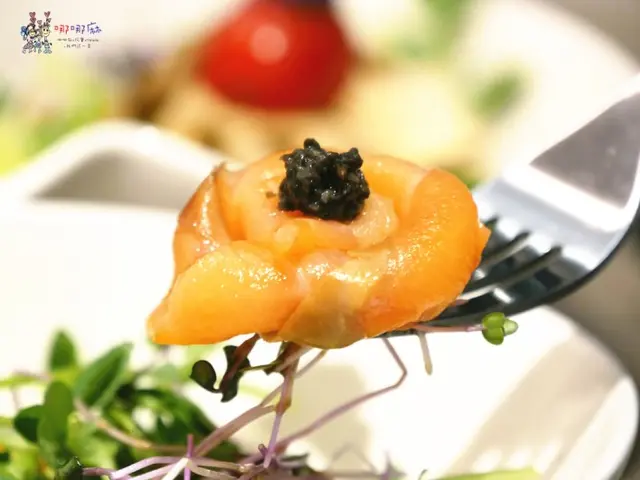 是說松露和煙燻鮭魚很搭,如果底下是溫野菜我就會把這一道吃完了。
