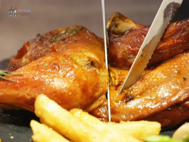 我蠻期待的這一道是迷迭香烤半雞,一開始看到隔壁桌上的時候就覺得應該蠻好吃的。