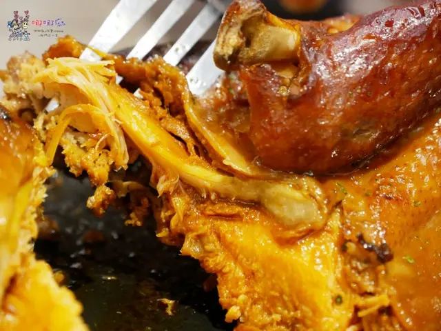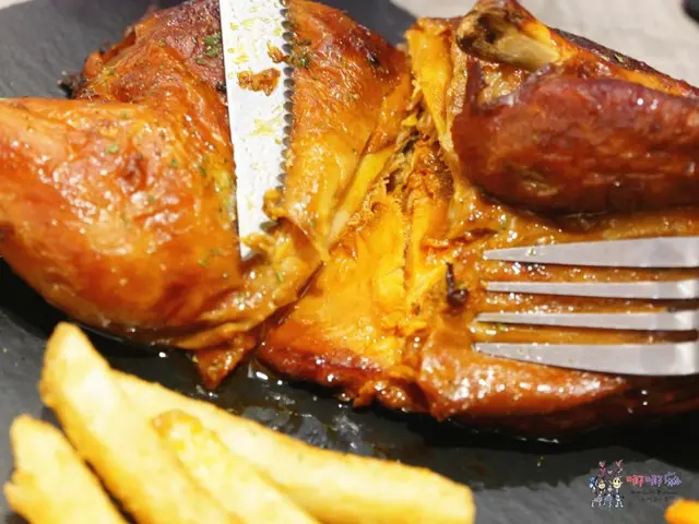 這烤半雞的雞腿部分很柔軟多汁,到雞胸就感覺似乎烤太久變的有點乾柴了,這點還蠻可惜的,不過當場有反應給店家,應該是會再改進的。