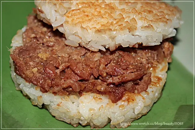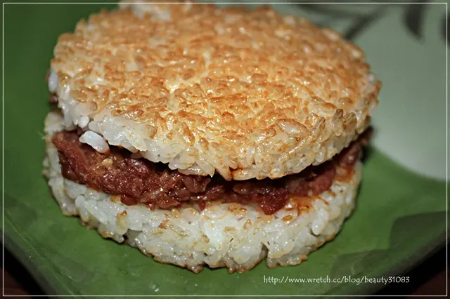 米漢堡的米飯粒粒分明..米飯表皮部分有稍微烤過讓米粒更香更緊密...