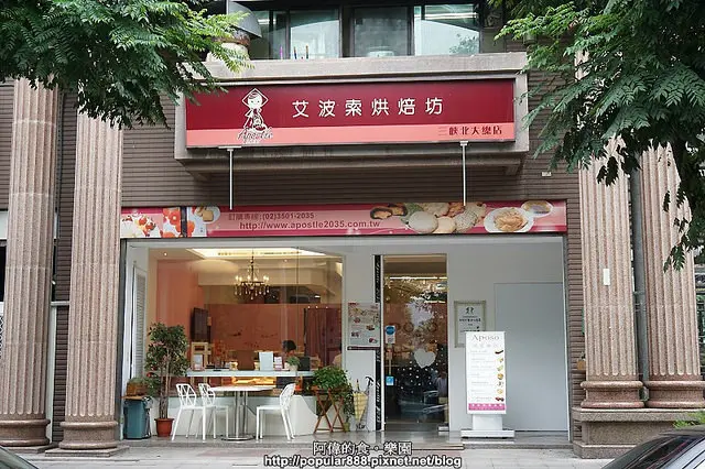 這是一個社區的街邊店面,挑高的羅馬柱感覺既古典又氣派,而<艾波索>乾淨明亮的店面、深紅+粉紅的招牌很吸引人。