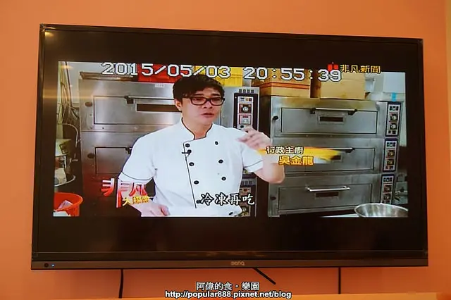 牆上電視播出之前「非凡大探索」報導的畫面,這位吳金龍師傅可是鼎鼎有名的點心名廚,店裡所有商品都是他研發出來的。