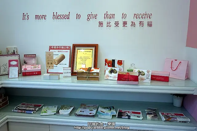 這是出自"聖經"使徒行傳20章35節的金句,原來<艾波索>的三位股東都是基督徒。其中老闆娘六年前一直從事社工的工作,雖然幫助不少人,但自己想作一些開心且自己有興趣的事業,就在2009年8月與幾位友人開了這間糕點店。