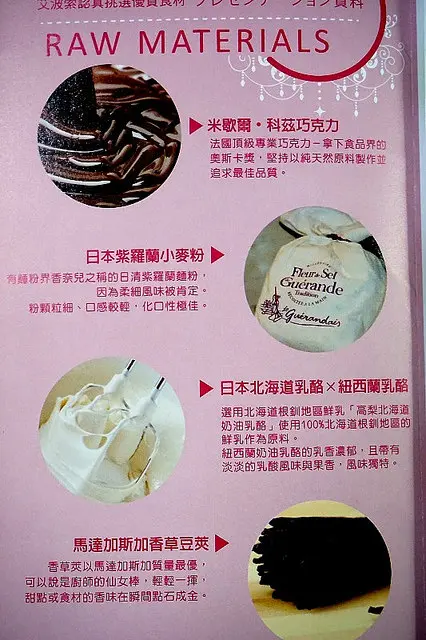 <艾波索>的原料用的非常好,大部份都是進口的!所以老闆娘很自豪的說,這些年台灣的食安風暴,對她們完全沒有影響,全都安然度過!