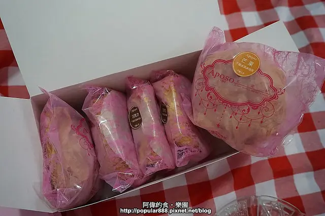 帶了三款明星商品回家品嚐,盒子也依照不同品項有不同的尺吋,但都是以粉紅色為主。