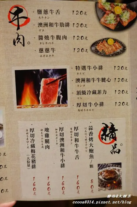 只有少數幾樣,像是牛舌、和牛小排及地雞腿肉等是 NT.160