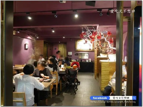 裡頭總共一、二樓,走的是紫色浪漫風,位置算多,但人潮更多!用餐期間滿滿都是人~