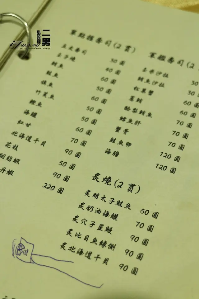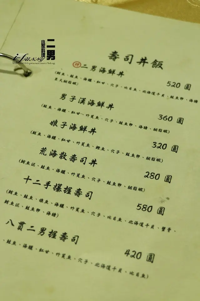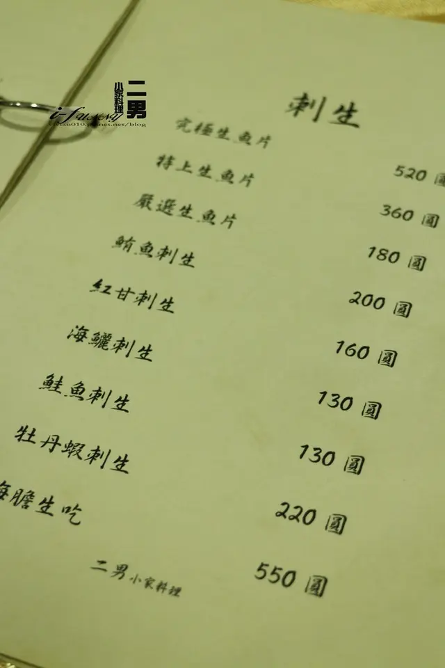 一般生魚片的寫法是”剌身”,二男的寫法比較特別。