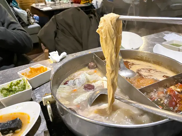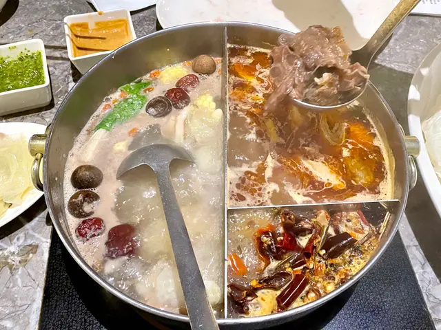 可選擇兩種鍋底,我們選擇了經典辣味與養生白味。經典辣味還將中藥材隔在一個小角落,撈料的時候不會撈到藥材,覺得超級貼心。