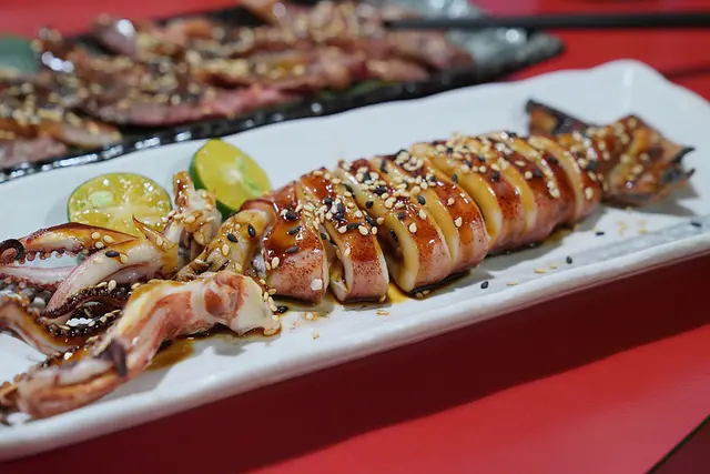 一口花枝襯著大量鮭魚卵!這真的是很奢侈的一件事。