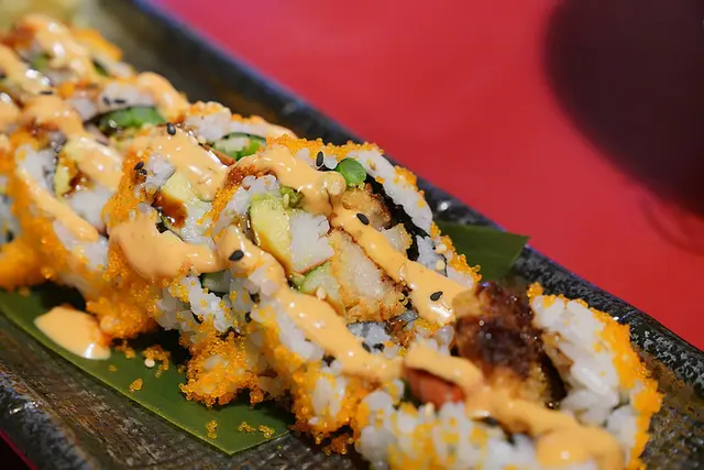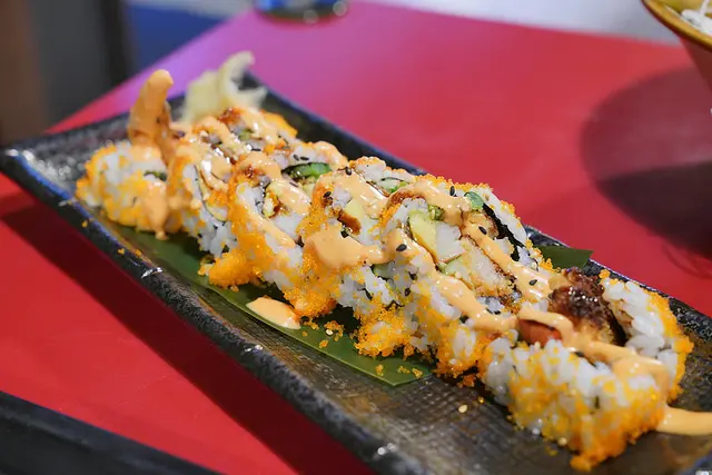 太驚人了,炸蝦藏匿在壽司裡頭,淋上明太子醬,還加了魚卵來點綴其口感!微辣爽口的滋味,在嘴裡還不時有炸蝦脆口的迷人滋味,實屬罪惡。