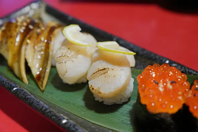 鮭魚卵軍艦、干貝握壽司、星鰻握壽司$120