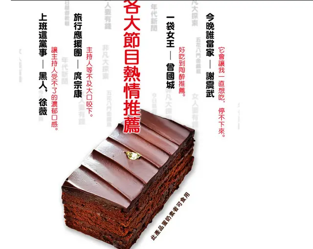 2、嚴選72%巧克力+知名巧克力,覆蓋特製手工榛果巧克力餅乾,及綿密的巧克力蛋糕,