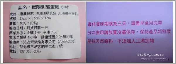 這次體驗的是6吋的蛋榚, 正確尺寸規格就清楚標示在紙盒上, 本來想拿尺來丈量一下,