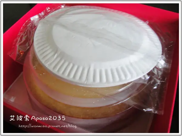 蛋糕底部舖了張硬紙板, 但要從盒子裡拿出有點困難度, 費了九牛二虎之力才取出