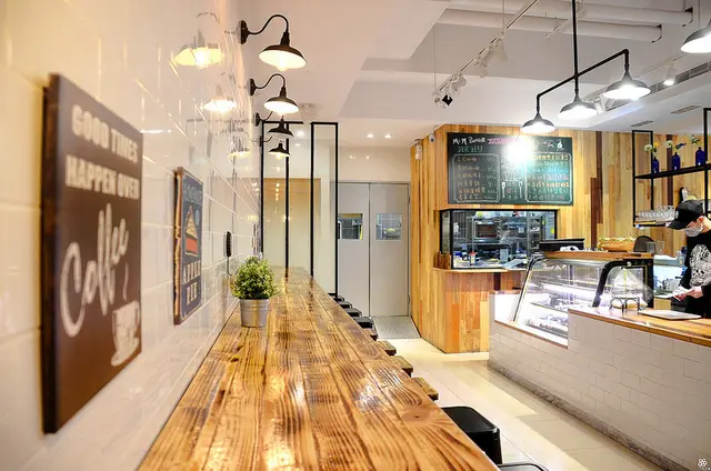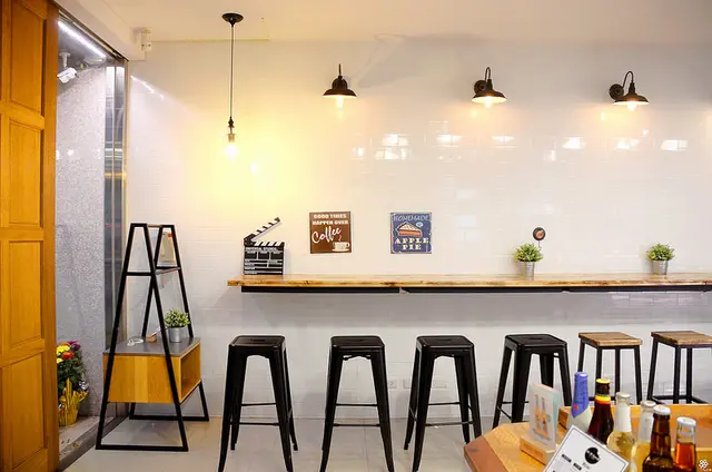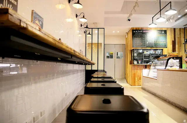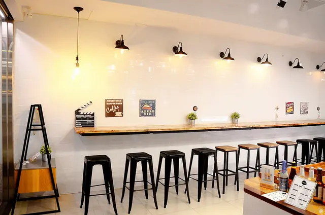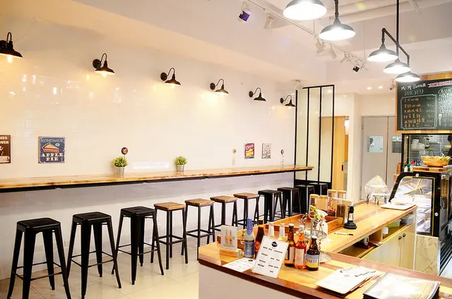M&M Burger的室內裝潢採用一系列的純白,穿插著工業風濃厚的鐵架與燈罩,
