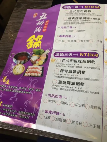 148元的湯頭有日式昆布鍋物及輕食蔬菜鍋物(方便隨緣素不含肉品)