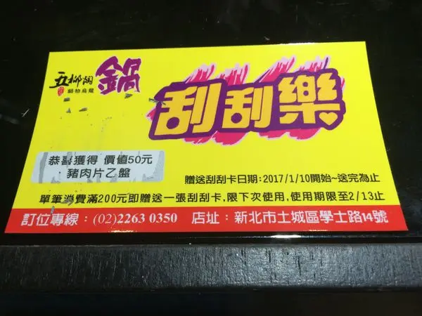 (記得之前吃老先覺也有刮刮卡活動是滿160元就送一張,然後我刮中雙人豪華套餐優惠~結果也沒去吃)