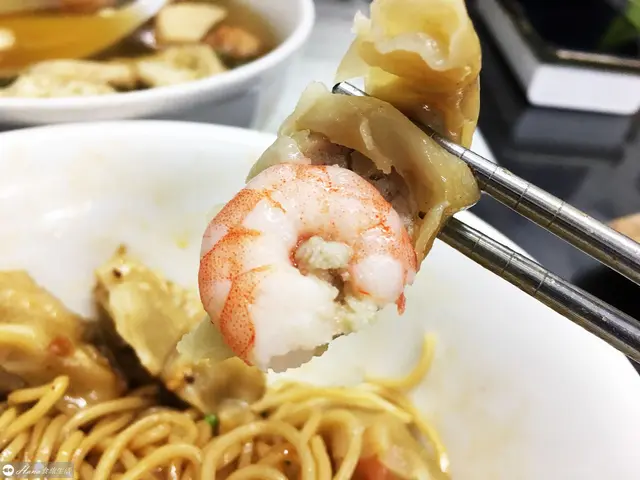 ▲每顆抄手裡都包有一隻完整飽滿的蝦子和肉末,