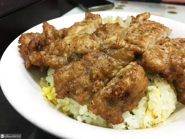 ▲排骨炸得散發油亮光澤,隱約還能看到底部炒飯粒粒分明,