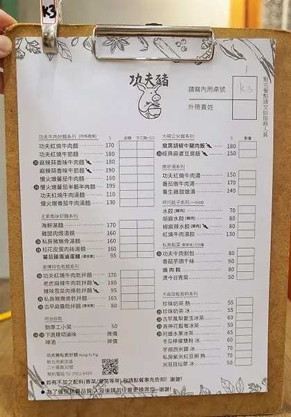 當天平日用餐時間店裡已是人滿為患,真的不誇張!想必一定有他必來的原因,店裡除了主推麵食,手搖飲料之外,還有水餃、滷味、冰品等等...用餐環境舒適,座位不算多,外食族也可以選擇外帶唷!吧檯區還有各式小菜,以牌價計算,另有茶水、醬料無限供應!