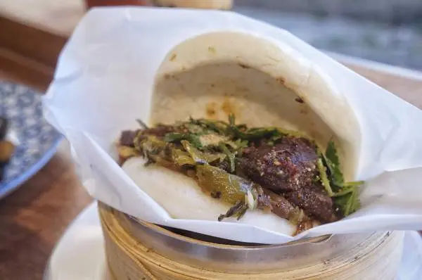 ▲原本以為會吃不夠的,所以才加點了刈包,以蒸籠的方式盛裝好氣派啊!偏瘦的牛肉,吃起來比較不油膩,稍稍覺得乾口,配上酸菜以及花生粉,增添了不少香氣,刈包本身的口感還不錯,吃完真的很有飽足感XD