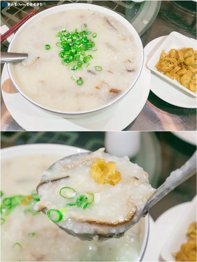 加入鴨肉、香菇、青蔥及油條,燉煮成鴨粥,