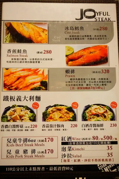 除了排餐也有鐵板義大利麵和兒童餐