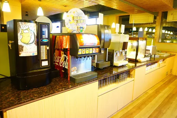 飲品部分有汽水機、咖啡機、紅茶、檸檬汁、水等
