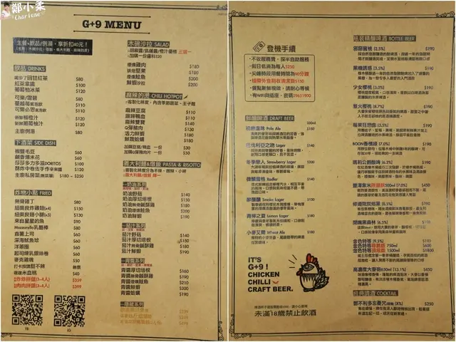 「G+9」鮮釀餐廳店名非常好記!主要因為販售的是雞加酒=chick and beer,