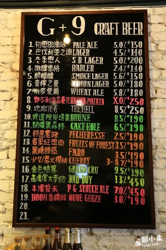 G+9的手工鮮釀啤酒,種類品項繁多,
