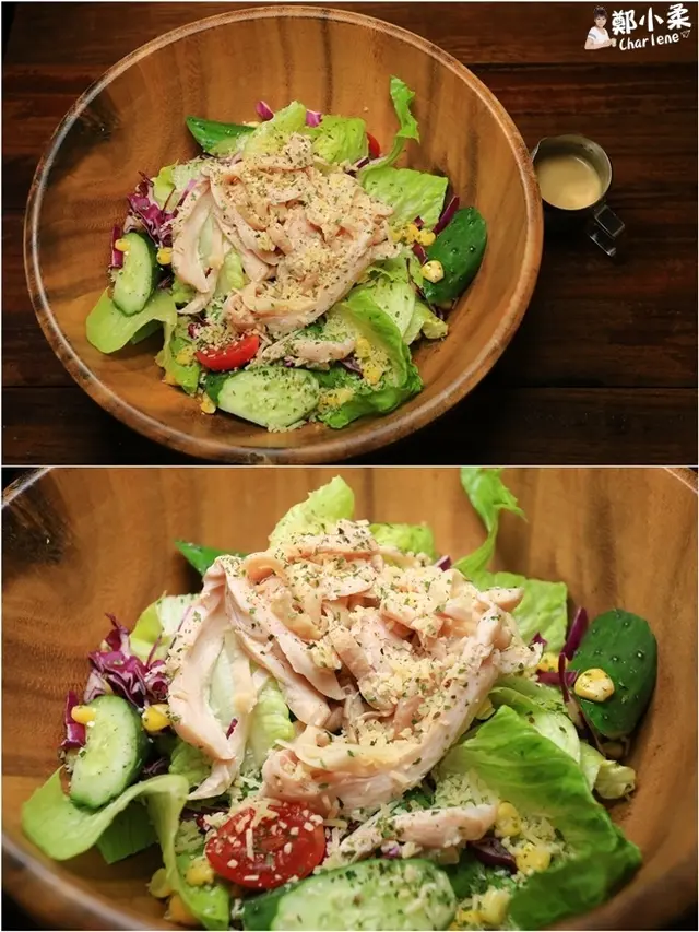 柔軟鮮香的煙燻雞肉提昇了整體滋味的鮮美,醬汁是特製胡麻醬。