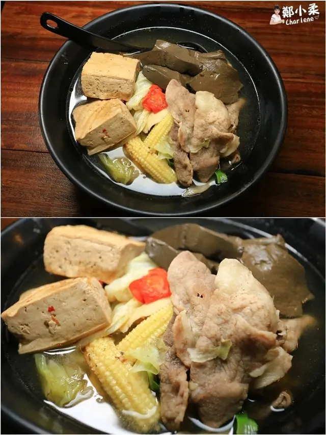 內含鴨血、豆腐、季節蔬菜、豬肉片及王子麵。
